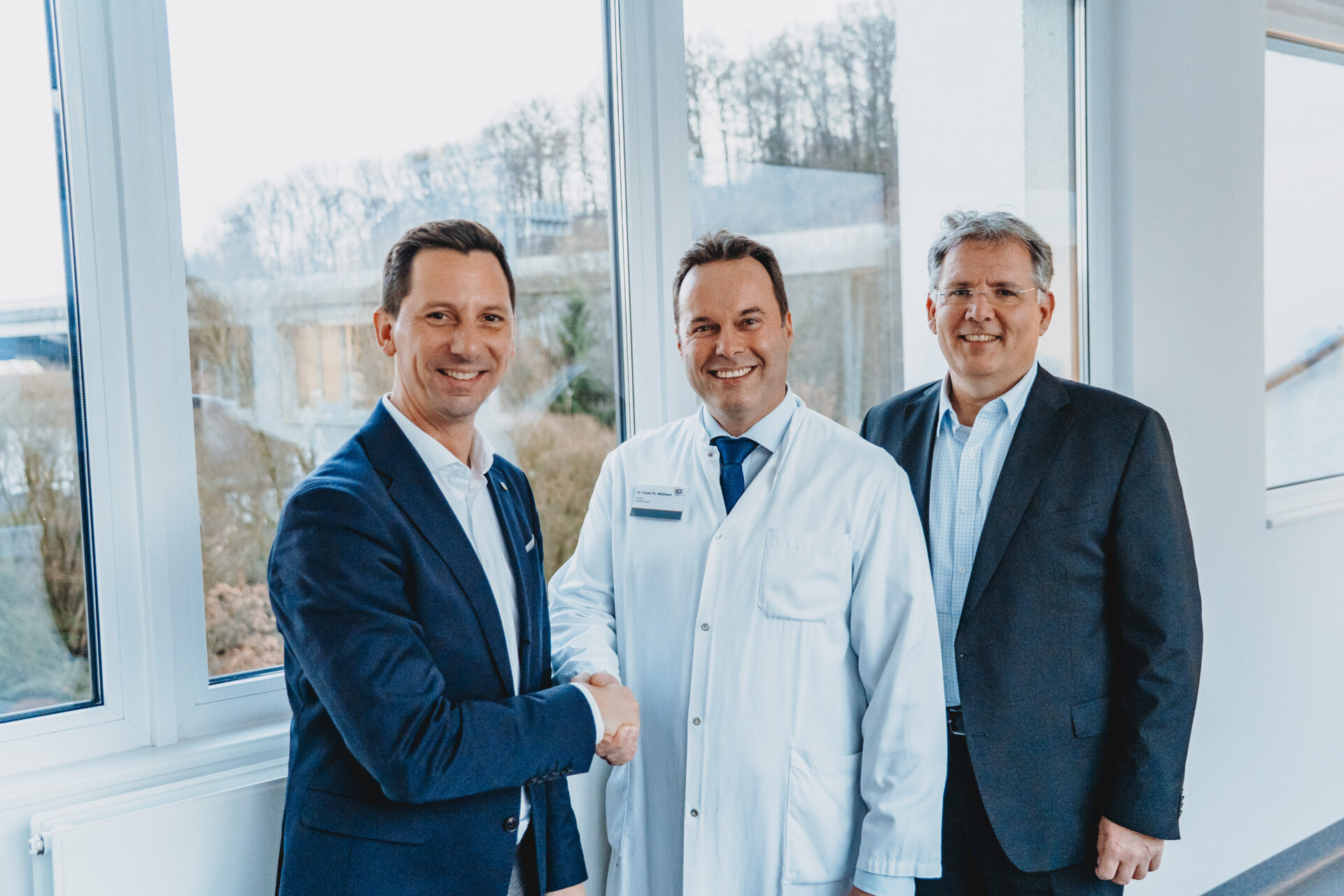 Mit einem neuen Namen und einer erweiterten chefärztlichen Leitung stellt sich die Klinik für Neurotraumatologie und Wirbelsäulenchirurgie des Klinikums Siegen zukunftsorientiert auf. Seit dem 1. Oktober 2025 wird das ärztliche Führungsteam durch Dr. med. Frank Th. Möllmann verstärkt, der gemeinsam mit den beiden bisherigen Chefärzten Dr. med. Thomas Klein und Markus Scheffler die medizinische Ausrichtung der Klinik weiterentwickelt. Damit stärkt das Klinikum Siegen seine Versorgung im Bereich Neurotraumatologie und Wirbelsäulenchirurgie für die Region Siegen-Wittgenstein nachhaltig.