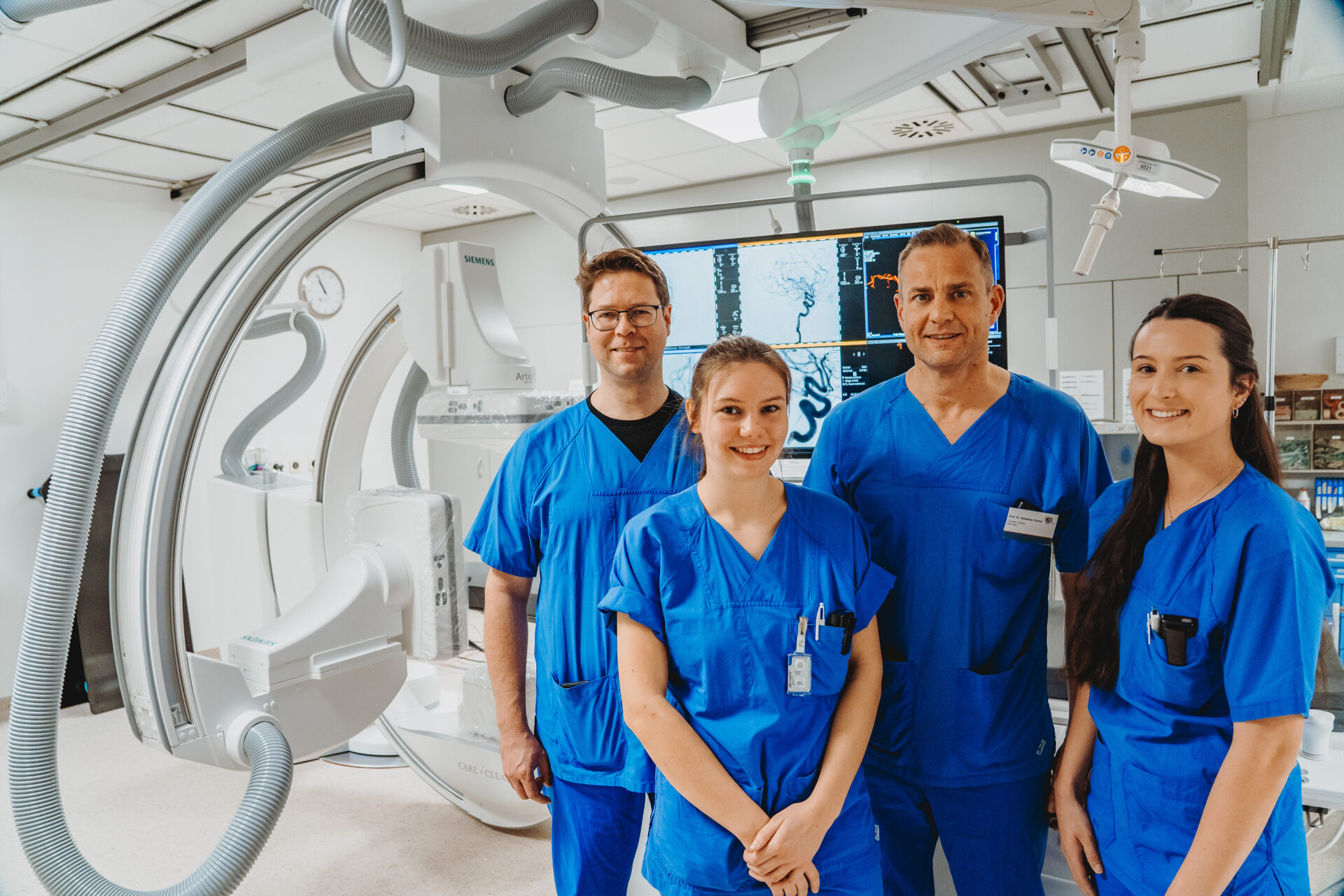 „Mit der neuen Angiografie-Anlage können wir Eingriffe an den Blutgefäßen des Gehirns und anderer Körperregionen ohne offene Operation in höchster Bildqualität und maximaler Sicherheit durchführen“, erklärt Prof. Dr. Sebastian Fischer, Leitender Chefarzt der Klinik für Radiologie und Neuroradiologie. Die Anlage des Typs Artis Q der Firma Siemens Healthineers verbindet hochauflösende Bildgebung in zwei Ebenen gleichzeitig mit einer schonenden Behandlung. Dadurch lassen sich komplexe Gefäßerkrankungen, insbesondere im Gehirn, noch präziser erkennen und minimalinvasiv behandeln. Patienten profitieren dabei von einer deutlich reduzierten Strahlenexposition, einer geringeren Kontrastmittelmenge und einer insgesamt schonenderen Untersuchung.